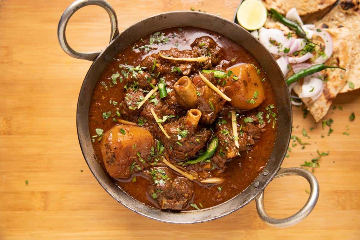Indulge in the creamy and mild indulgence of Mutton korma, a delicately spiced dish that delights the senses.